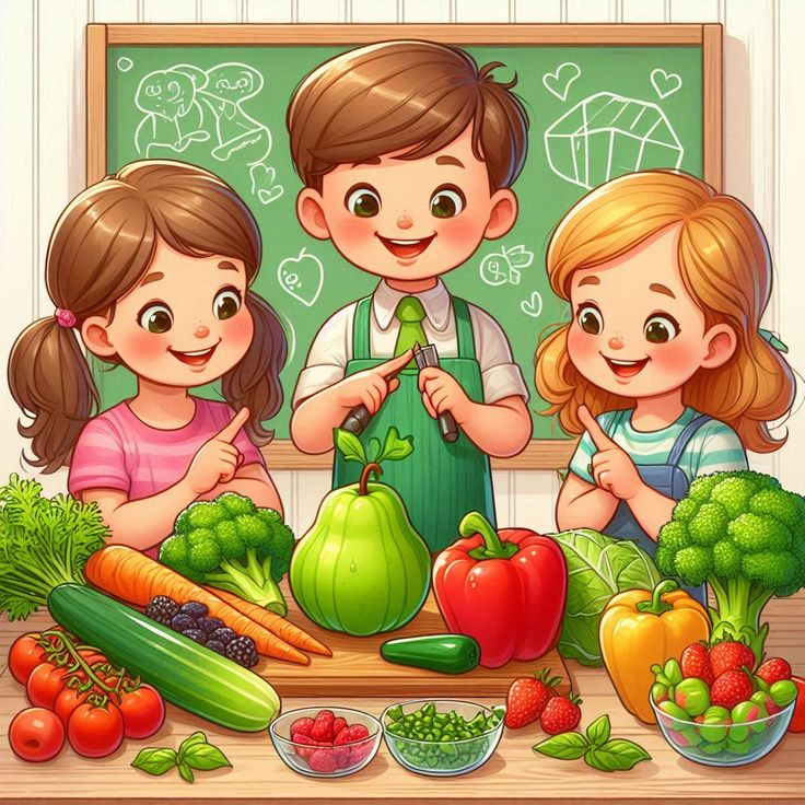 Colorful fruits and veggies provide fiber, vitamins, and antioxidants for growth and immunity.