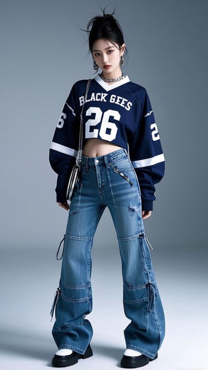 Think crop tops, cargo pants, butterfly clips, and shiny fabrics — all signature Y2K items.